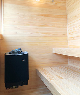 施工は、世界的に評価されているティーロヒーロ(TYLOHELO)社の家庭用サウナを使用。断熱性・防火性に優れた設計で、建築基準法にも対応しており、安心して長く使える仕様です。設置後は、朝の目覚めや夜のリラックスタイムに活用されており、生活の質が向上したと感じているそうです。